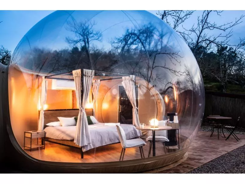 Concepto diferencial basado en HABITACIONES BURBUJA orientadas a una experiencia única de descanso, privacidad y conexión con la naturaleza.