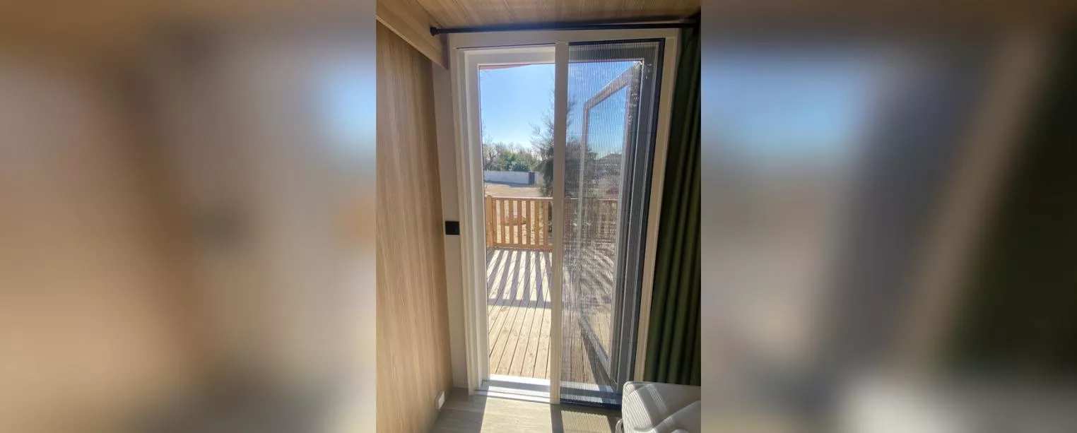 Nuestras soluciones permiten mejorar el confort de los alojamientos de alquiler, protegiendo eficazmente contra los insectos y garantizando al mismo tiempo la oscuridad en dormitorios y espacios de vida. Están diseñadas para adaptarse fácilmente a las diferentes aperturas presentes en los mobil-homes: ventanas, puertas y ventanales.